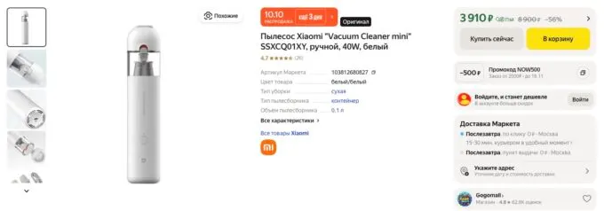 Сейчас на Яндекс Маркете топовый мини-пылесос Xiaomi Mi Vacuum Cleaner можно купить всего за 3910 рублей, а с кэшбеком некоторых банков он обойдётся ещё дешевле.