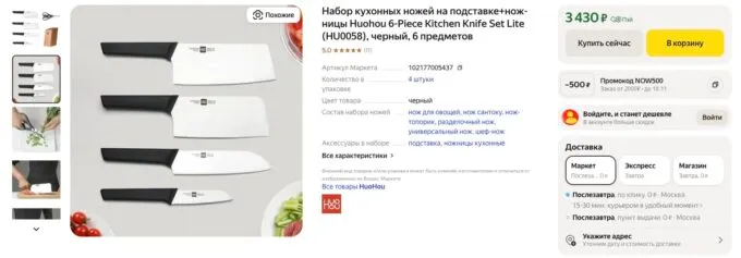 Прямо сейчас отличный комплект кухонных ножей Xiaomi HuoHou Kitchen Steel Knife Set можно купить на Яндекс Маркете за 3430 рублей. А с кэшбеком некоторых банков вы сэкономите ещё несколько сотен рублей.