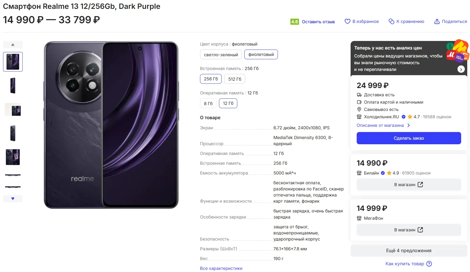 На Али уже появился свежий Realme 15, а в России до сих продают тринадцатое поколение. Причем базовый Realme 13 совсем не дорогой: на price.ru за забытый смартфон просят минимум 14 990 рублей.