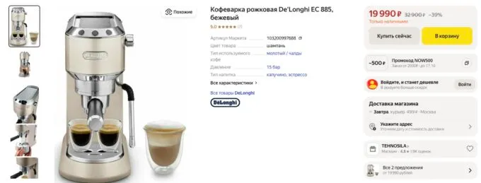 Перестаньте тратиться на кофейни. Мы нашли шикарную рожковую кофеварку DeLonghi за бесценок