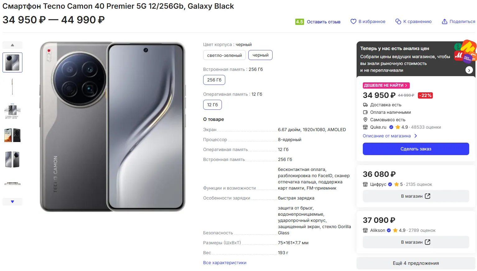 Кажется, что про Tecno Camon 40 Premier практически никто не знает, а зря. Этот смартфон стоит меньше 35 тысяч, но снимает лучше, чем большинство конкурентов. При этом у девайса нет проблем и с остальными характеристиками.