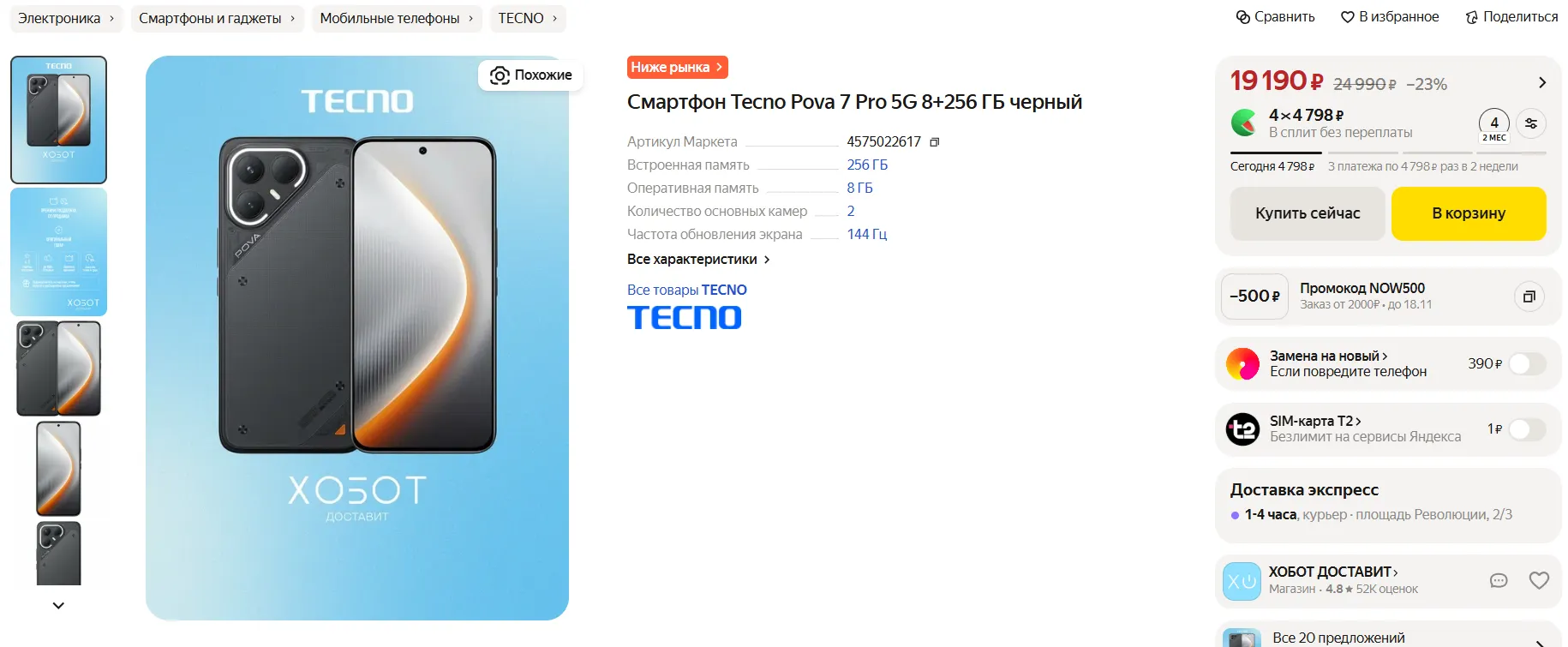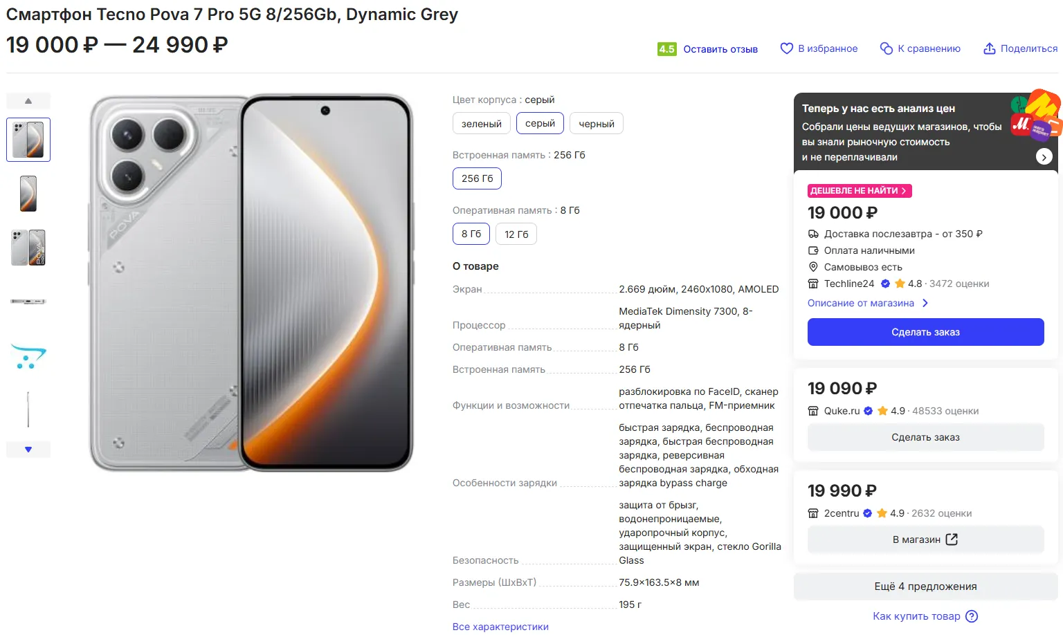 На Маркете за Tecno Pova 7 Pro просят минимум 19 190 рублей. На price.ru ситуация похожая — там ценники стартуют с 19 тысяч. Достойно, можно смело брать.