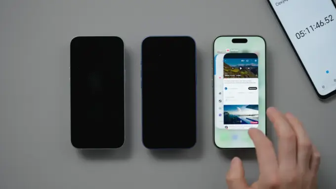 Еще есть отличия в автономности. Автор провел тесты и выяснил, что в режиме просмотра ютуба iPhone 17, 16 и 15 работают 12:33, 10:21 и 9:58 часов соответственно. В тесте на реальное использование быстрее всех сдал iPhone 15 — 5 часов и 5 минут. iPhone 16 проработал 5 часов 11 минут — когда он умер, у iPhone 17 осталось еще 8% зарядки. Этого хватит, чтобы еще час показывать видео. Также эксперт заметил, что у нового смартфона самая быстрая зарядка.
