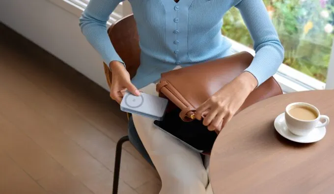 Это компактный пауэрбанк, который эффективно работает со всеми смартфонами Apple, начиная с iPhone 12. У него прямоугольный корпус, и во время зарядки он будет держаться на магнитах MagSafe.