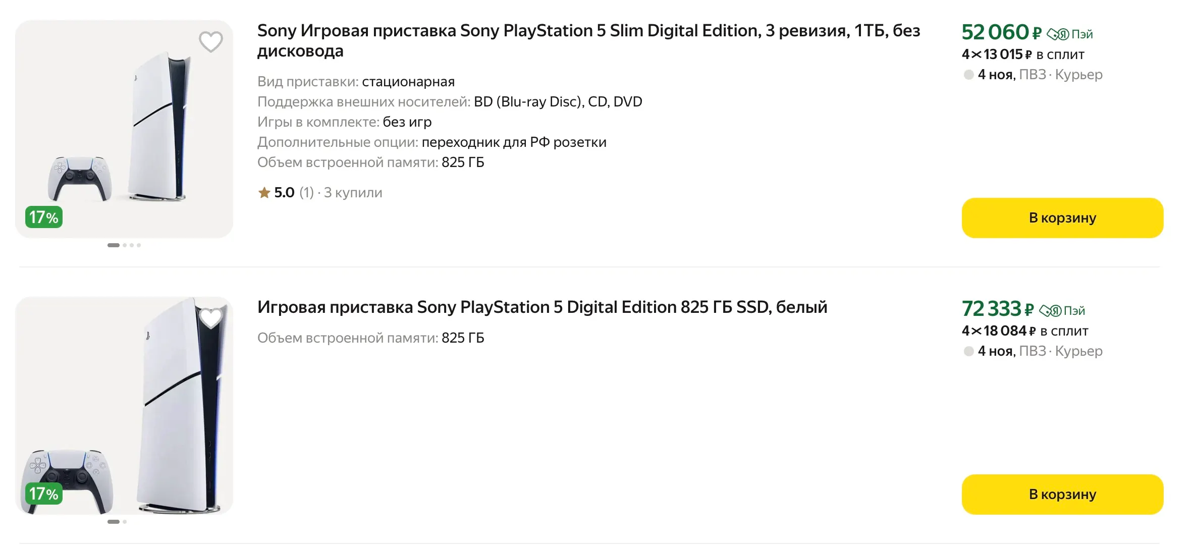 Консоль третьей ревизии можно вычислить по номеру CFI-2100. Или ввести в поиске маркетплейса PS5, а затем указать в фильтре объем накопителя 825 Гбайт. Обычно емкость накопителя честно указывают в карточке товара.