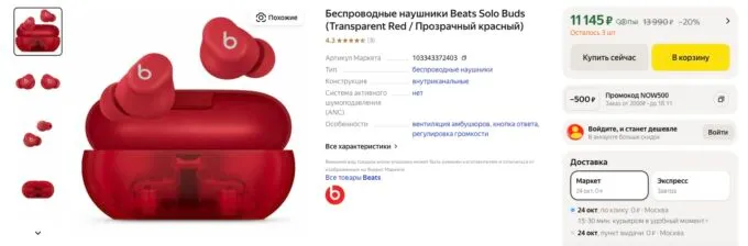 Прямо сейчас фирменные наушники Beats Solo Buds можно купить на Яндекс Маркете всего за 11 145 рублей. Также не забывайте, что многие банки готовы отсыпать щедрый кэшбек с покупок на этой платформе.