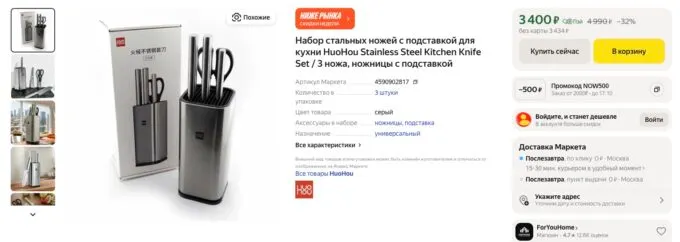 Сейчас на Яндекс Маркете изумительный набор ножей Xiaomi HuoHou Stainless Steel Kitchen Knife Set (HU0095) можно урвать за 3400 рублей, а с кэшбеком некоторых банков он обойдётся ещё дешевле.
