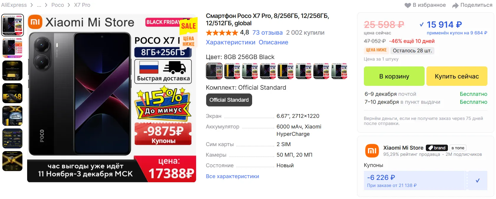 Ноябрь — месяц крупнейших распродаж года. На Али только завершилась 11.11, и сразу стартовала Черная пятница — ценники на некоторые лоты опустились еще сильнее. Среди акционных товаров много классных смартфонов — о десятке самых выгодных из них и поведаем ниже.