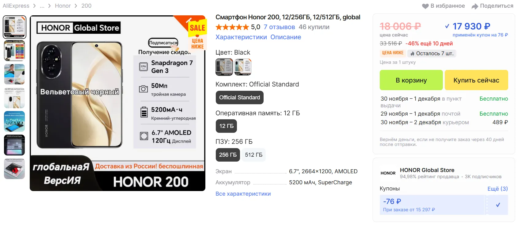 Кстати, этот «онор» шустро доставят со склада в РФ — одобряем.