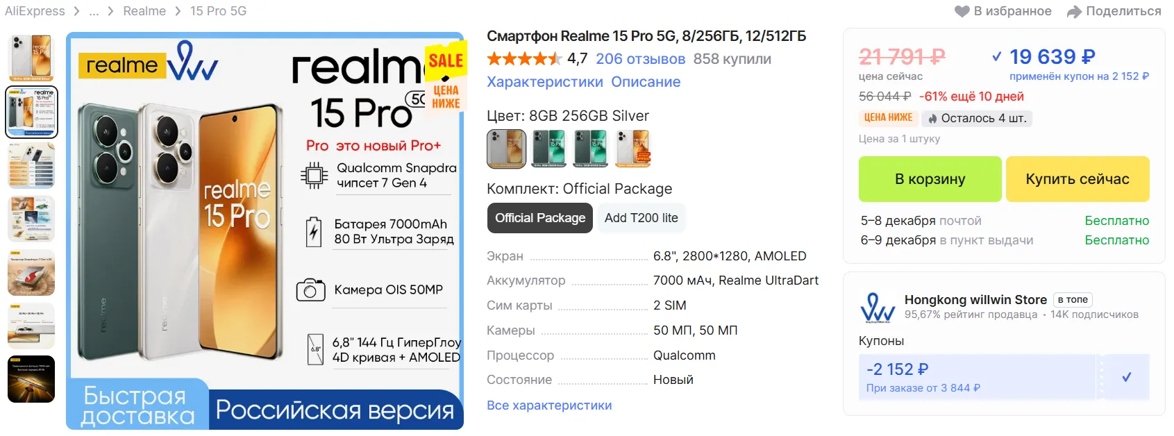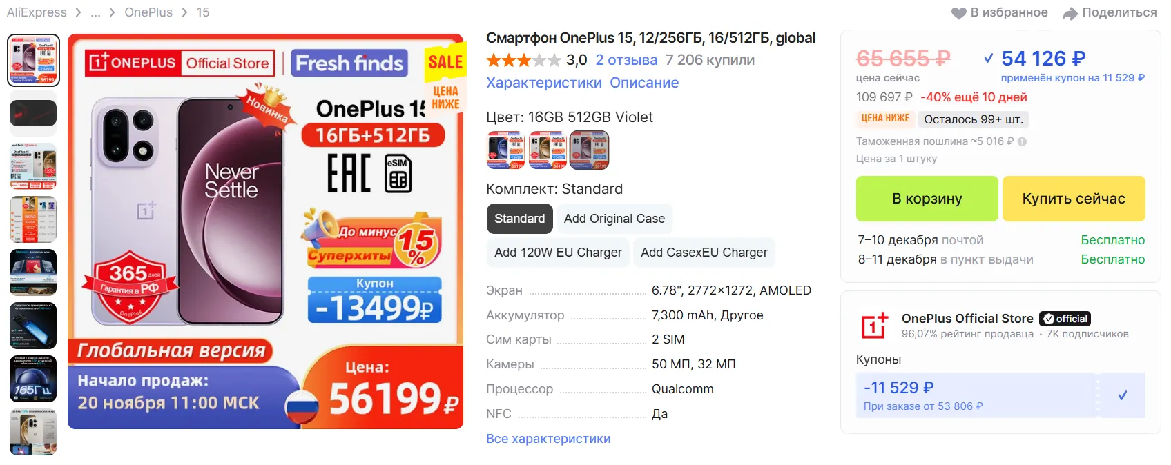 Цена: от 21 420 рублей с учетом купона продавца (пошлина — 480 рублей).
