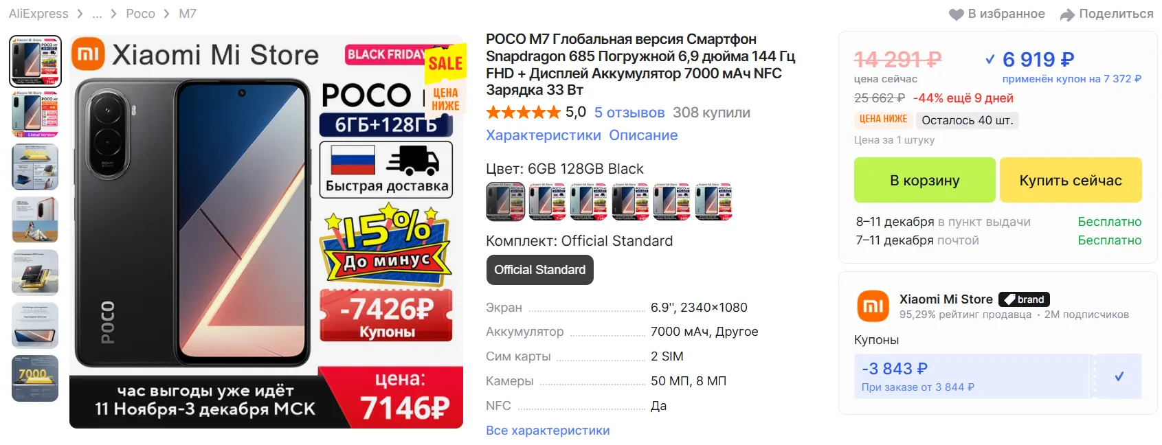 Ноябрь — месяц крупнейших распродаж года. На Али только завершилась 11.11, и сразу стартовала Черная пятница — ценники на некоторые лоты опустились еще сильнее. Среди акционных товаров много классных смартфонов — мы изучили ассортимент Xiaomi Poco и выделили пятерку самых выгодных вариантов.