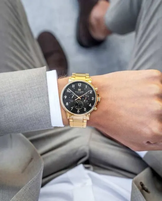 Tommy Hilfiger 1791978 — сочетание американского стиля и функциональности в золотом исполнении. Классический круглый корпус с IP-покрытием, арабские цифры и отдельные циферблаты для даты и дня недели делают их одновременно универсальными и удобными.