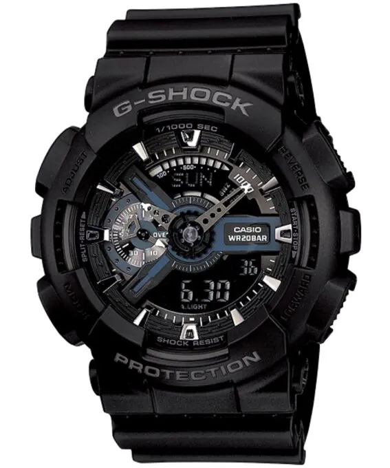 Модель G-Shock GA-110-1B предлагает мировое время с 29 городами, секундомер с точностью 1/1000 секунды, таймер, SPLIT-хронограф, 5 будильников, автокалендарь до 2099 года. Автоподсветка активируется при повороте запястья. Влагозащита в 200WR позволяет использовать часы при плавании и для водных видов спорта. Это идеальный выбор для активного образа жизни, путешествий и спорта, когда нужен надёжный аксессуар с мощным визуальным характером.