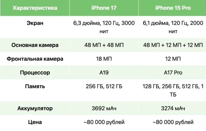 Что выбрать – iPhone 17 или iPhone 15 Pro? Оказывается, флагман проигрывает по многим параметрам
