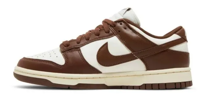 Завершаем подборку с помощью легендарных «данков» в расцветке Cacao Wow. Это унисекс-кроссовки с узнаваемым дизайном, мягким воротником и верхом из натуральной кожи. А еще они легкие и дышащие. Неудивительно, что Dunk Low – одна из самых популярных моделей от Nike.