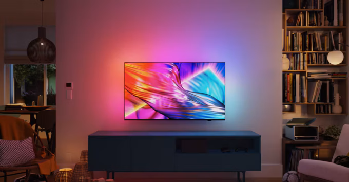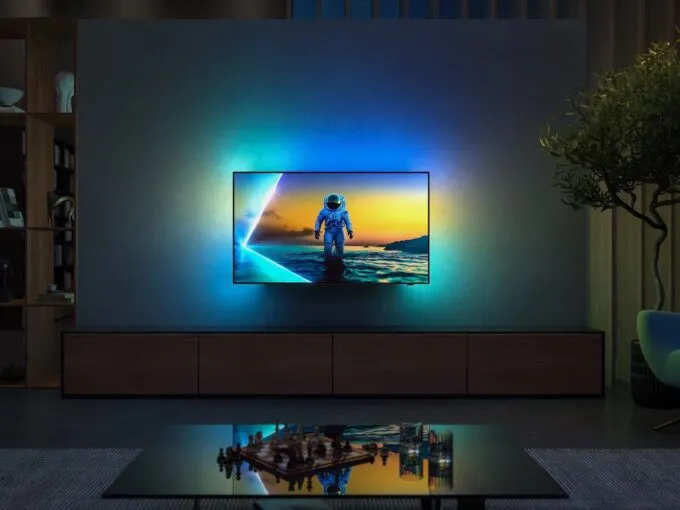 Технически термин Ambilight происходит от Ambient Lighting Technology, что переводится как «Технология Окружающего Освещения». Это фирменная технология Philips, созданная для телевизоров с динамической подсветкой. Она анализирует изображение на экране и с помощью встроенных светодиодов проецирует на стену рассеянный свет, совпадающий по цвету с кадром. Такой эффект визуально расширяет картинку, усиливает погружение и снижает нагрузку на глаза. Впервые Ambilight представили в 2004 году на выставке IFA в Берлине, и с тех пор технология стала визитной карточкой телевизоров Philips.