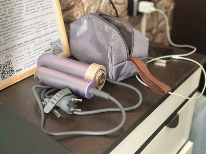 В сумочке, если надо, можно уместить фен и все аксессуары, но я бы выбрал один, самый нужный, или носил бы в кейсе только фен. Pocket Ultra пережил три поездки, и каждый раз ему находилось место в багаже — он не занимает много места в чемодане стандартного размера (или в рюкзаке).