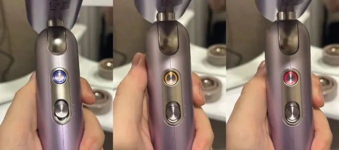 Фен умеет подавать холодный, теплый и горячий воздух. Также есть опция, с которой устройство чередует холодный и горячий. И это реально оптимально: так можно быстро высушить волосы, не перегреть их и не обжечь кожу головы.