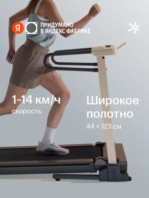 Вот такая беговая дорожка имеет полотно длиной 144 см, скорость до 14 км/ч — можно ходить или бегать, бесщеточный двигатель 2 л.с. и складную конструкцию.