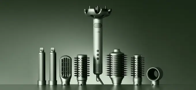 Гаджет объединяет в себе фен и стайлер для завивки. Также устройство имеет функцию автоматической щетки для укладки волос. В наличии 8 насадок — можно просто сушить, а можно и укладывать, подобрав правильную щетку под длину волос.