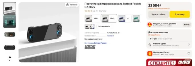 Уже сейчас на Яндекс Маркете шикарную консоль Retroid Pocket G2 можно купить всего за 25 300 рублей (с учётом пошлины). Также не забывайте, что некоторые банки готовы отсыпать кэшбек с покупок на этой платформе.