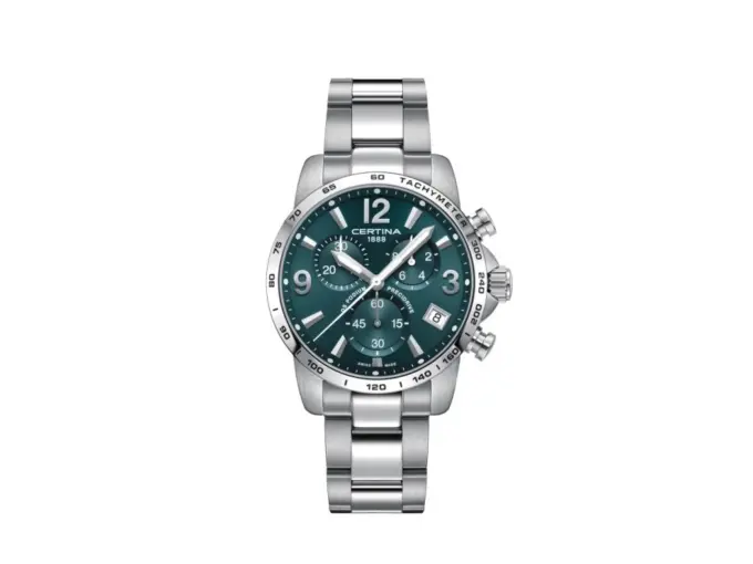 Certina DS Podium Chronograph C034.417.11.097.00 — классический спортивный хронограф с упором на долговечность и функциональность. Зелёный циферблат с крупными метками обеспечивает отличную читаемость, а корпус из стали усилен технологией DS Concept для максимальной устойчивости к высоким нагрузкам. Дополняют всё это сапфировое стекло и заводная головка с уплотнением.