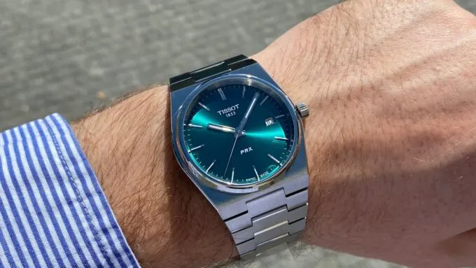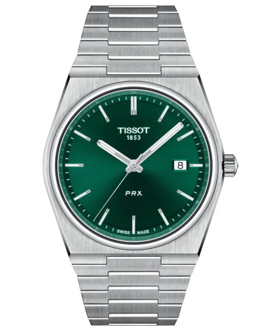 Одна из самых популярных моделей последних лет — Tissot PRX (T137.410.11.091.00). Именно её так любят сравнивать с люксовыми AP Royal Oak за счёт схожего ретро-стиля, тонкого корпуса и интегрированного браслета. Визуально они выглядят на миллион, а стоят дешевле 50 тысяч рублей. Наша модель предлагает изумрудный циферблат, аккуратные метки и сапфировое стекло. Они создают эффект дорогого аксессуара, который сразу бросается в глаза.