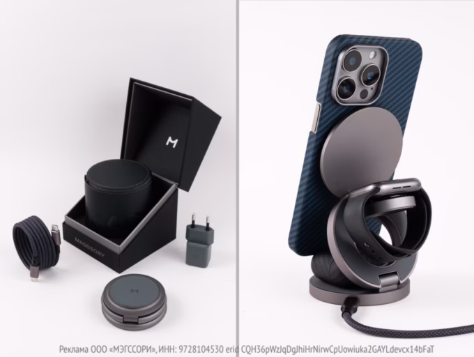 Вещь от Magssory поддерживает самый передовой стандарт Qi 2, то есть айфоны можно будет заряжать с мощностью до 25 Вт. Комплект очень богатый, ничего докупать не нужно. В набор входит кожаный чехол для транспортировки, внутри которого уже есть сама зарядка, адаптер питания GaN на 30 Вт и магнитный кабель длиной 1,2 м. Производитель работает в России и быстро решает все вопросы по гарантии.
