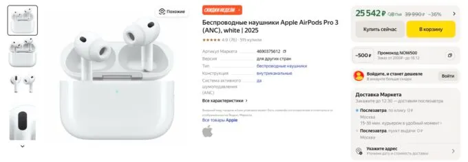 Прямо сейчас на Яндекс Маркете флагманские наушники AirPods Pro 3 можно купить за 25 542 рубля. Также не забывайте, что многие банки предлагают кэшбек за покупки на этой платформе.