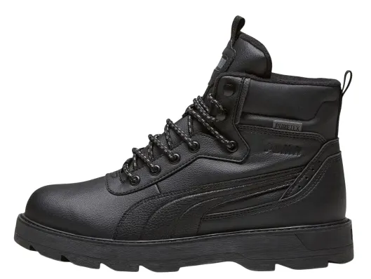 У этой пары от немецкого бренда верх выполнен из искусственной кожи. Мембрана PureTex обеспечит защиту от влаги и ветра, а внутри у модели мягкая флисовая подкладка. Подошва выполнена с технологией PUMAGRIP (она отвечает за сцепление на льду), а стелька обуви подстраивается под вашу стопу.
