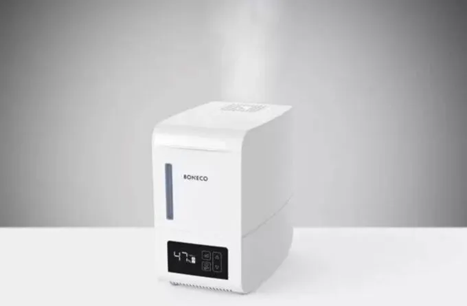 У таких увлажнителей внутри находится нагреватель, который нагнетает пар и способствует очень быстрому увлажнению помещения. Однако выходящим паром можно обжечься, паровые приборы шумят, а еще жрут больше энергии, чем устройства другого типа. Бак Boneco S250 имеет емкость 3,5 л, который на максимальной скорости работы улетает за 10 часов. Эксперты отмечают, что вода здесь нагревается, а затем слегка охлаждается, так что обжечься водяным паром нельзя. К умному дому устройство не подключается — управление только ручное.