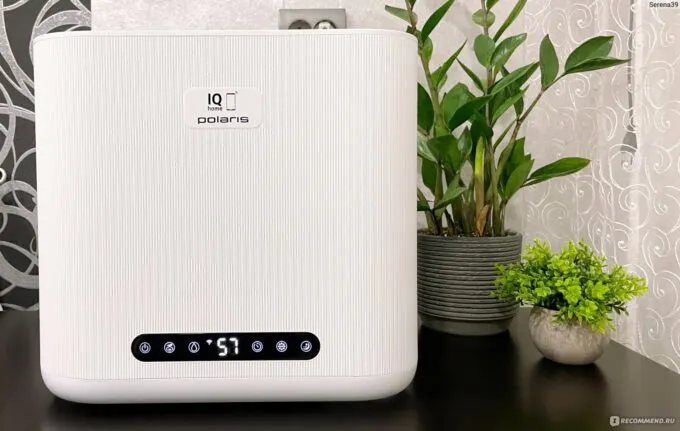 Внутри ультразвуковых аппаратов расположена мембрана, которая колеблется на высоких частотах и расщепляет воду на мелкие частицы. Конкретно эта модель эффективно работает на площади 80 квадратных метров, имеет вместительный бак на 8 л и две УФ-лампы для стерилизации, управляется через приложение и подключается к умному дому.