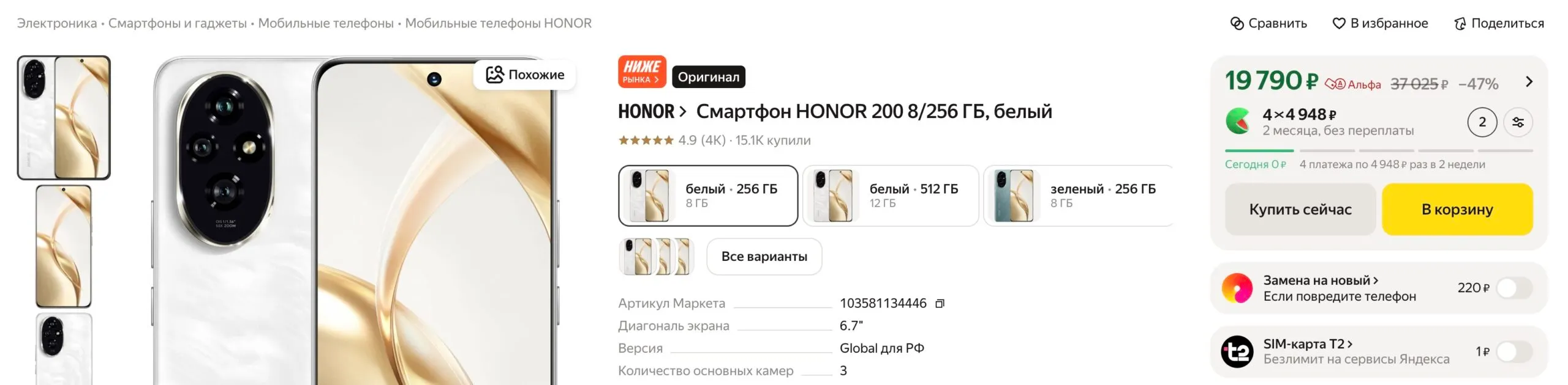 Сейчас Honor 200 можно купить в России за 20 тысяч рублей. Ультра-версия с накопителем 512 Гбайт стоит не сильно дороже — около 23 тысяч рублей.