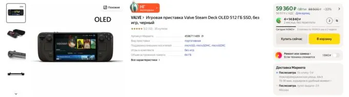 Прямо сейчас на Яндекс Маркете лучшую портативную консоль Steam Deck OLED можно купить от 59 360 рублей. Также не забывайте, что некоторые банки могут отсыпать кэшбек за покупки на этой платформе.