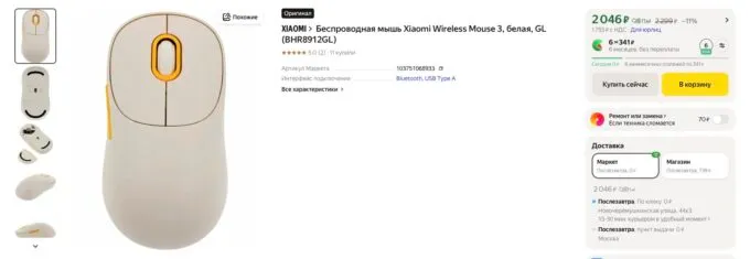 Прямо сейчас на Яндекс Маркете отличную мышь Xiaomi Wireless Mouse 3 можно урвать всего за 2046 рублей. Также не забывайте, что с кэшбеками некоторых банков она обойдётся ещё дешевле.