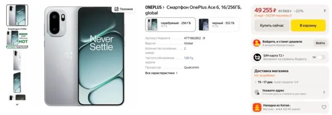 OnePlus Ace 6 представили в конце октября. Он получил 6,83-дюймовый OLED‑дисплей с развёрткой 165 Гц, пиковой яркостью до 1800 нит и 10‑битной цветопередачей. В основе лежит чип Snapdragon 8 Elite с графикой Adreno 830 и движком WindChaser Gaming Engine, которые дают мощный буст в играх и тяжёлых приложениях. Питает девайс аккумулятор на 7800 мАч с поддержкой зарядки SuperVOOC на 120 Вт.