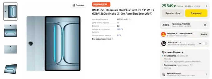 За свой скромный прайс планшет OnePlus Pad Lite предлагает 11-дюймовый IPS-дисплей с разрешением 1920х1200 пикселей и частотой обновления 90 Гц. Он работает на проверенном чипе MediaTek Helio G100 с 6 ГБ оперативки и 128 ГБ встроенной памяти. За автономность отвечает батарея на 9340 мАч с поддержкой быстрой зарядки до 33 Вт. Ещё тут есть две камеры по 5 Мп спереди и сзади, четыре динамика с Hi-Res Audio и Android 15 из коробки. А вот слота для карт microSD в этой модели нет, но в эпоху стриминга и онлайн-кинотеатров это не так критично.
