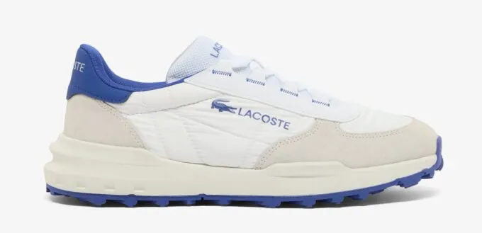А вот и легкие кроссовки с нейлоновым верхом и цепким рисунком протектора. Это модель Elite Active Eco, выполненная в бело-синей расцветке. Внутри расположилась подкладка из полиэстера, а дизайн и силуэт айтема отсылают нас к спортивным моделям от Lacoste. Впрочем, конкретно эти кроссовки подходят и для повседневной носки.