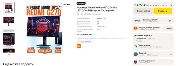 Сейчас на Яндекс Маркете лучший геймерский монитор Xiaomi Redmi Gaming Monitor G27Q (P27QDA-RG) можно урвать всего за 23 255 рублей. А с кэшбеками некоторых банков он обойдётся ещё дешевле.