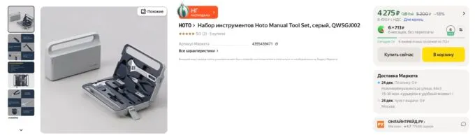 Сейчас на Яндекс Маркете шикарный набор инструментов HOTO Manual Tool Set можно купить за 4275 рублей. Также не забывайте, что некоторые банки готовы отсыпать кэшбек при покупках на этой платформе.