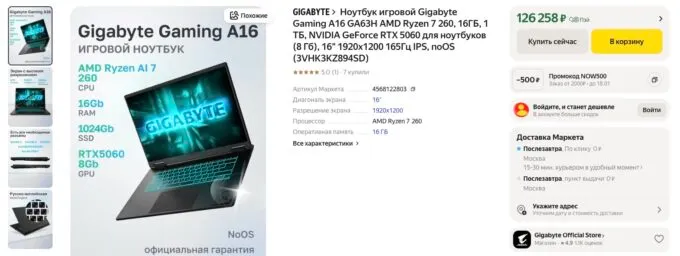 Наверняка вы уже знаете, что собрать новый ПК сейчас практически нереально: цены на память, видеокарты и другие комплектующие улетели в космос. В ближайшие год-два ситуация будет только ухудшаться. К счастью, готовые решения в виде игровых ноутбуков пока ещё можно найти по вменяемой цене. Яркий пример — Gigabyte Gaming A16 GA63H. Это большой, мощный и качественный ноут, который легко тянет все актуальные тайтлы, а стоит не дороже iPhone 17 Pro Max. Главное — успеть, поскольку такие лоты моментально сметают с полок.