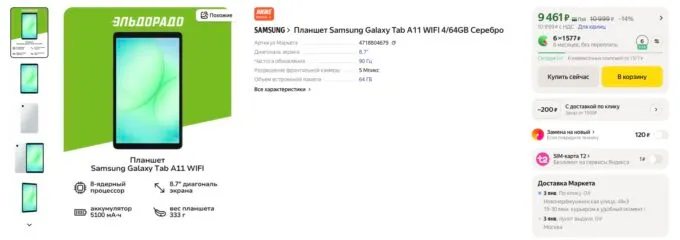 Планшет от Samsung предлагает LCD-экран на 8,7 дюйма с разрешением 800p и частотой обновления 90 Гц. Интерфейс на нём отрисовывается плавно, а для детского сценария этого более чем достаточно. Внутри установлен MediaTek Helio G99 — легендарный чип для большинства повседневных задач. Доступны версии с 4 или 8 ГБ оперативной памяти и накопителем на 64 или 128 ГБ. Плюс тут есть поддержка карт microSD. Камеры вполне стандартные для своего класса: 8 Мп основная и 5 Мп фронтальная.