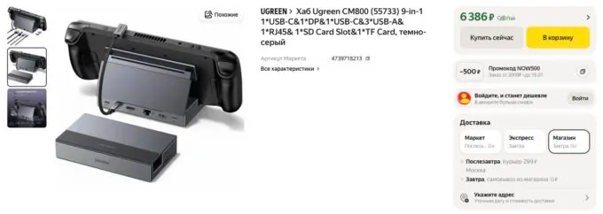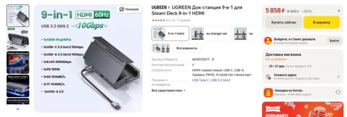 Прямо сейчас на Яндекс Маркете отличную док-станцию Ugreen 9-в-1 (CM800 55733) можно урвать от 5858 рублей за HDMI-версию и 6386 рублей за DisplayPort. А с кэшбеками от некоторых банков она обойдётся ещё дешевле.