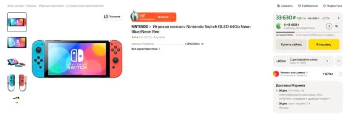 Прямо сейчас на Яндекс Маркете хитовую консоль Nintendo Switch OLED можно купить всего за 33 630 рублей . А с кэшбеками некоторых банков она обойдётся ещё дешевле.