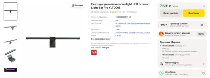 Сейчас на Яндекс Маркете флагманскую лампу Xiaomi Yeelight LED Screen Light Bar Pro можно купить всего за 7691 рубль. Также не забывайте про кэшбеки некоторых банков, которые помогут ещё больше сэкономить на покупке.