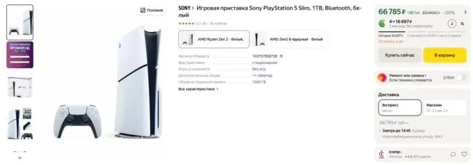 Прямо сейчас на Яндекс Маркете хитовую консоль PlayStation 5 Slim Digital Edition можно урвать всего за 66 785 рублей. Также не забывайте, что с кэшбеками некоторых банков вы можете прилично сэкономить.