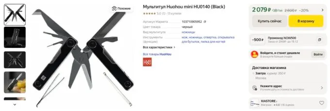 Прямо сейчас на Яндекс Маркете хитовый мультитул Xiaomi HuoHou Mini можно урвать за 2079 рублей, а с кэшбеками некоторых банков он обойдётся ещё дешевле.