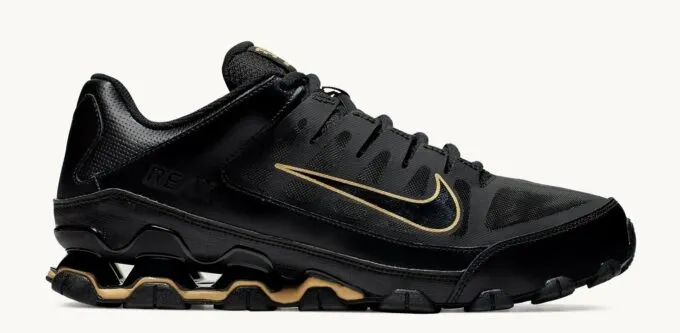 Теперь знакомимся с черными кроссовками Reax 8 TR, созданными для фитнеса и беговых тренировок. Это брутальная обувь с верхом из натуральной кожи и текстиля, но ключевой элемент пары – необычная амортизирующая подошва. Несмотря на суровый дизайн, перед вами легкие и дышащие кроссовки.