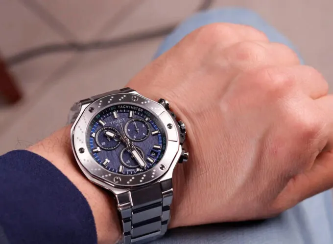 Tissot T-Race Chronograph T141.417.11.041.00 — флагман подборки и выбор для тех, кто хочет максимально статусные «котлы». Дизайн этой модели вдохновлён мотоспортом — агрессивные формы, выразительные элементы и насыщенный синий циферблат сразу притягивают взгляды окружающих. Прочный стальной корпус и браслет дополнены сапфировым стеклом с антибликовым покрытием.