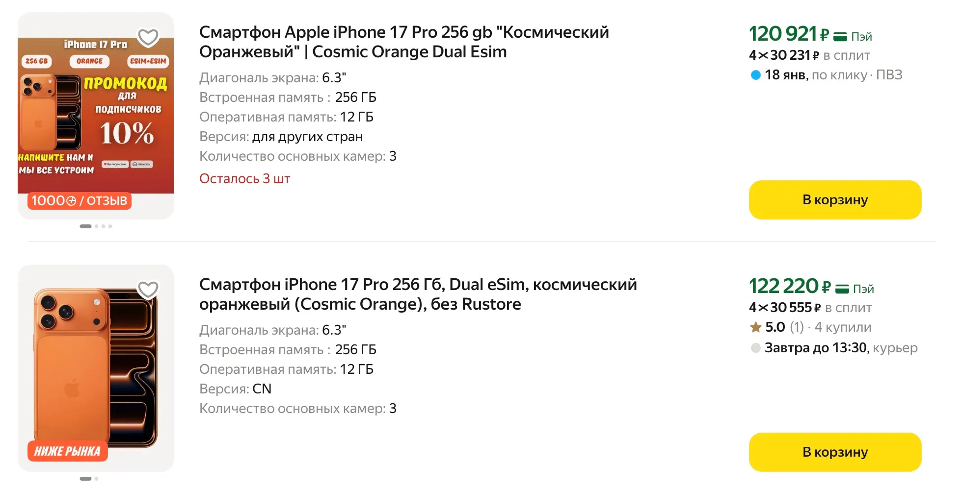И да — подорожали не только базовые смартфоны Apple. Например, флагманский iPhone 17 Pro стоит минимум 120 тысяч рублей.